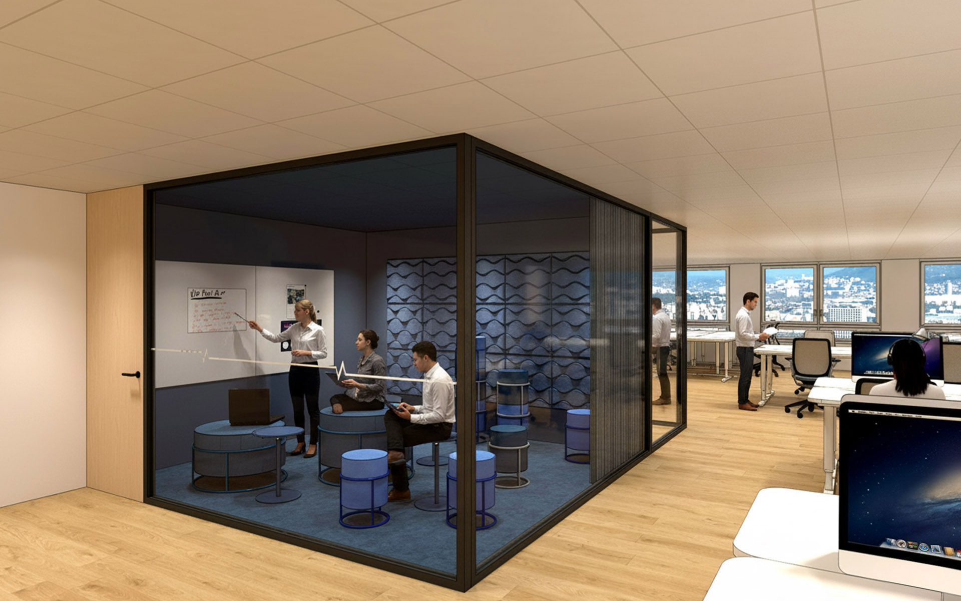 Travailler dans un cadre agréable apparaît aujourd’hui comme une évidence. Le choix du mobilier, l’accord des couleurs et des matières permettrons d’obtenir un lieu, où il fait bon vivre et échanger, ce vecteur souvent sous estimé permettra à vos collaborateurs d’évoluer dans un cadre familier. L’aménagement de votre bureau est aussi un important vecteur de communication avec ses partenaires et clients, cela permet de faire transpirer les valeurs et la philosophie de votre société.